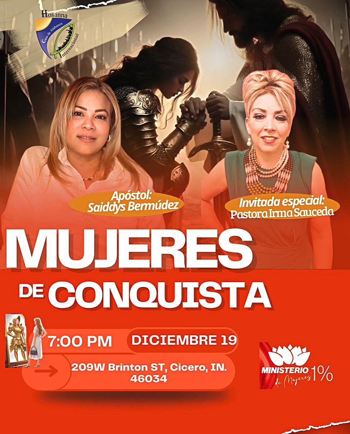El Ministerio de Mujeres 1% y Hosanna Casa de Alabanza Internacional te invitan a un evento transformador: Mujeres de Conquista.